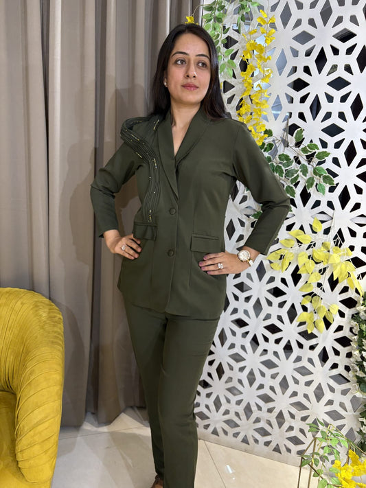 BOTTLE GREEN BLAZER STLE CO-ORD SET