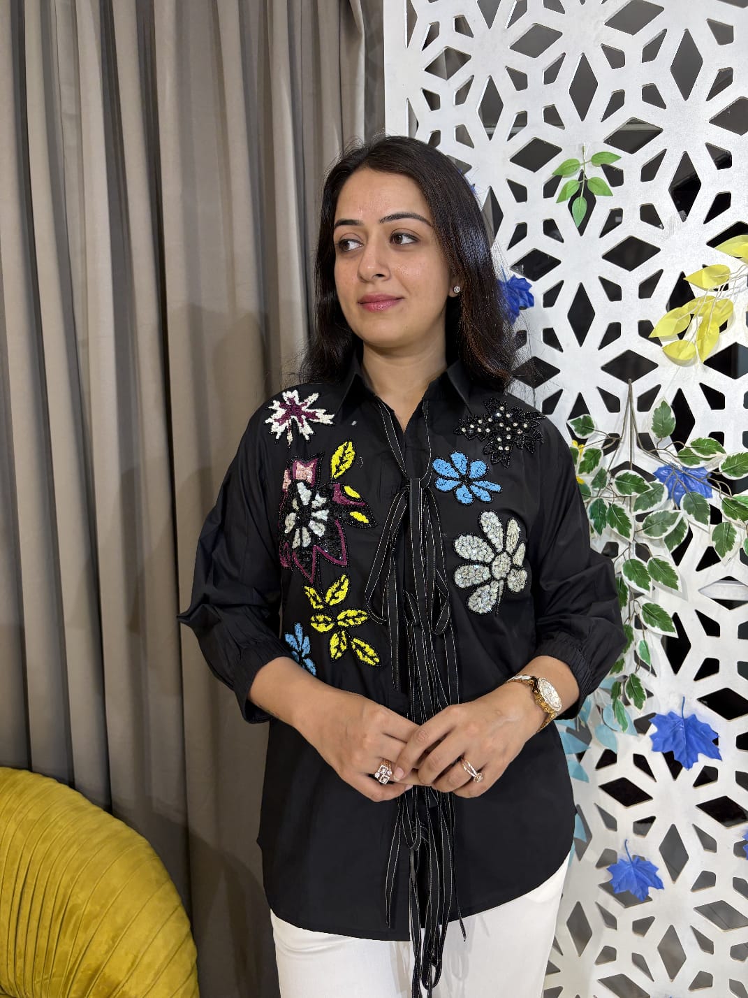 Indulge in refined elegance with our Luxury Imported Party Top with Elegant Handwork. Made from premium imported fabric, this top is adorned with delicate, handcrafted detailing that adds a touch of artistry and sophistication to your party ensemble.